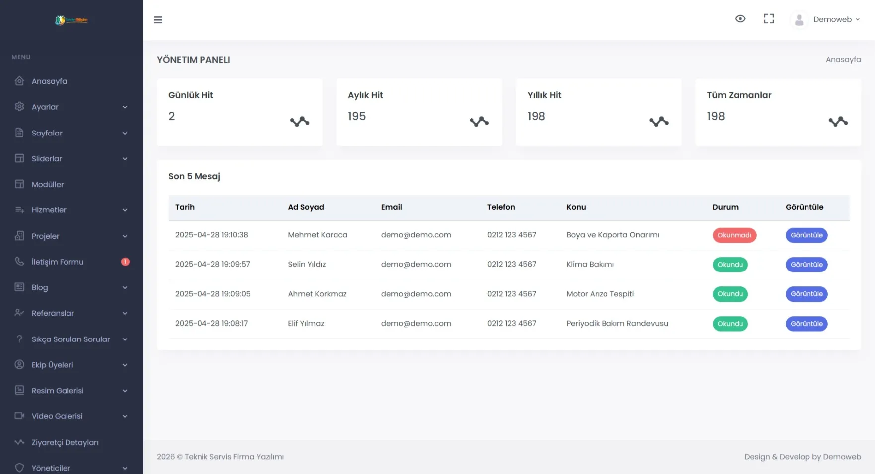 Canlı demo ve admin demo ile satın almadan önce sistemi inceleyebilirsiniz.