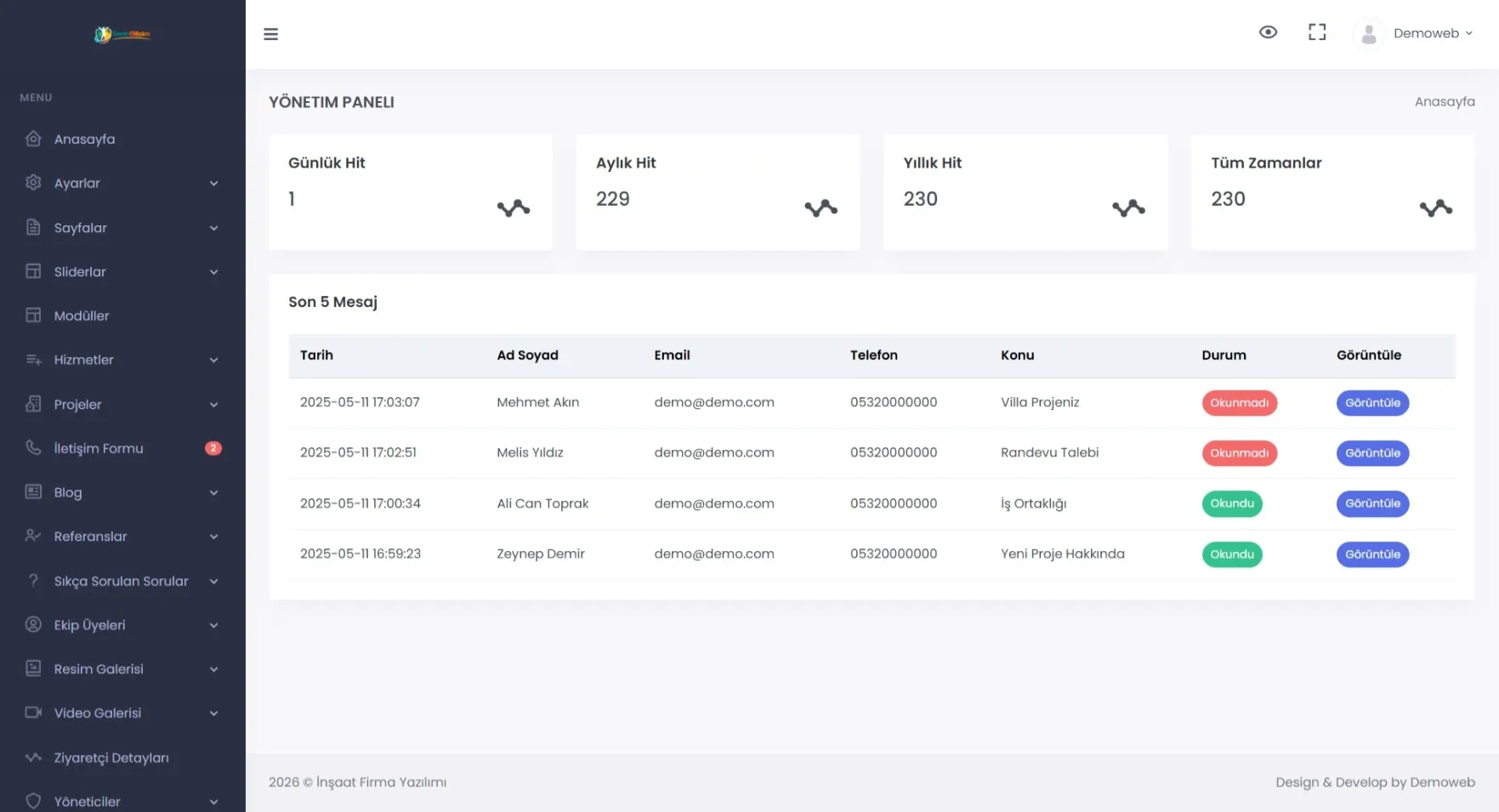 Canlı demo ve admin demo ile satın almadan önce sistemi inceleyebilirsiniz.