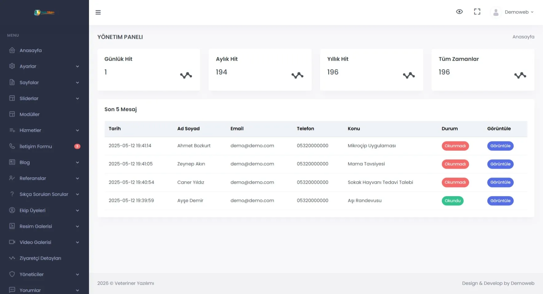 Veteriner Web Sitesi Hazır Yazılım Scripti