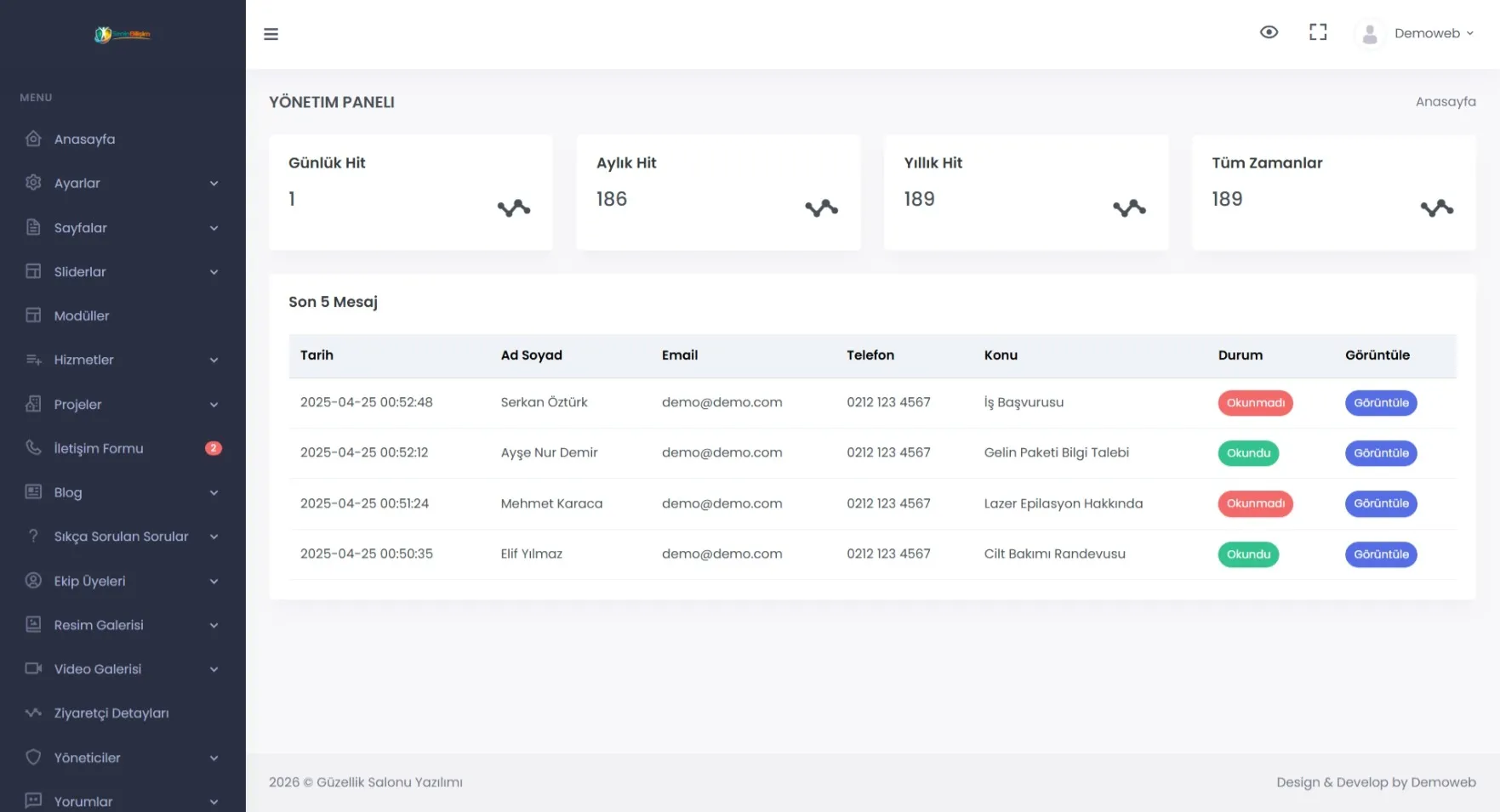 Canlı demo ve admin demo ile satın almadan önce sistemi inceleyebilirsiniz.