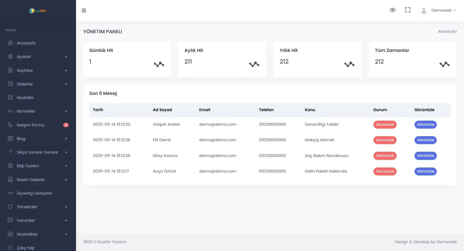 Canlı demo ve admin demo ile satın almadan önce sistemi inceleyebilirsiniz.