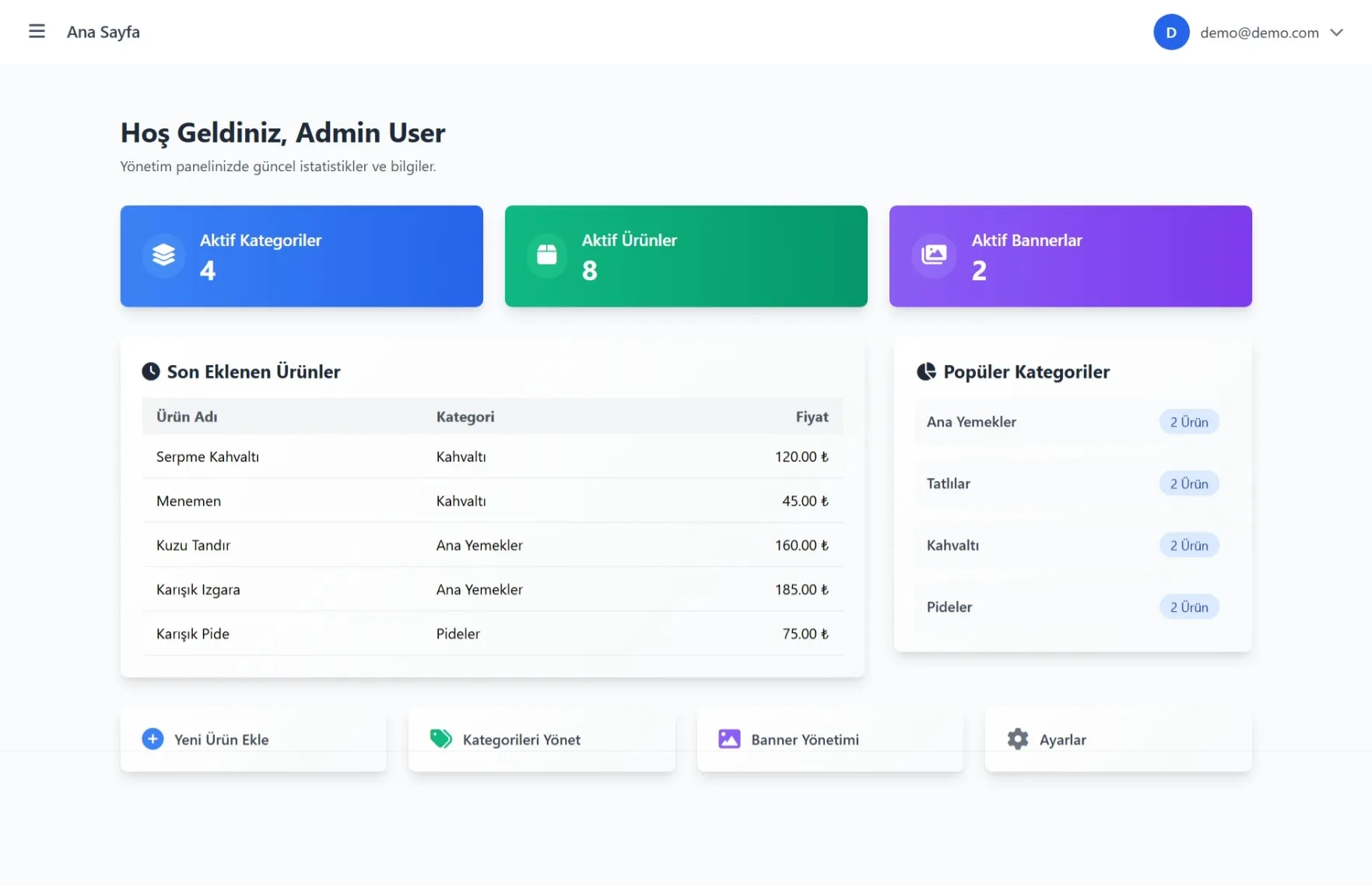 🔄 Menü içeriklerinizi anlık güncelleyebilirsiniz