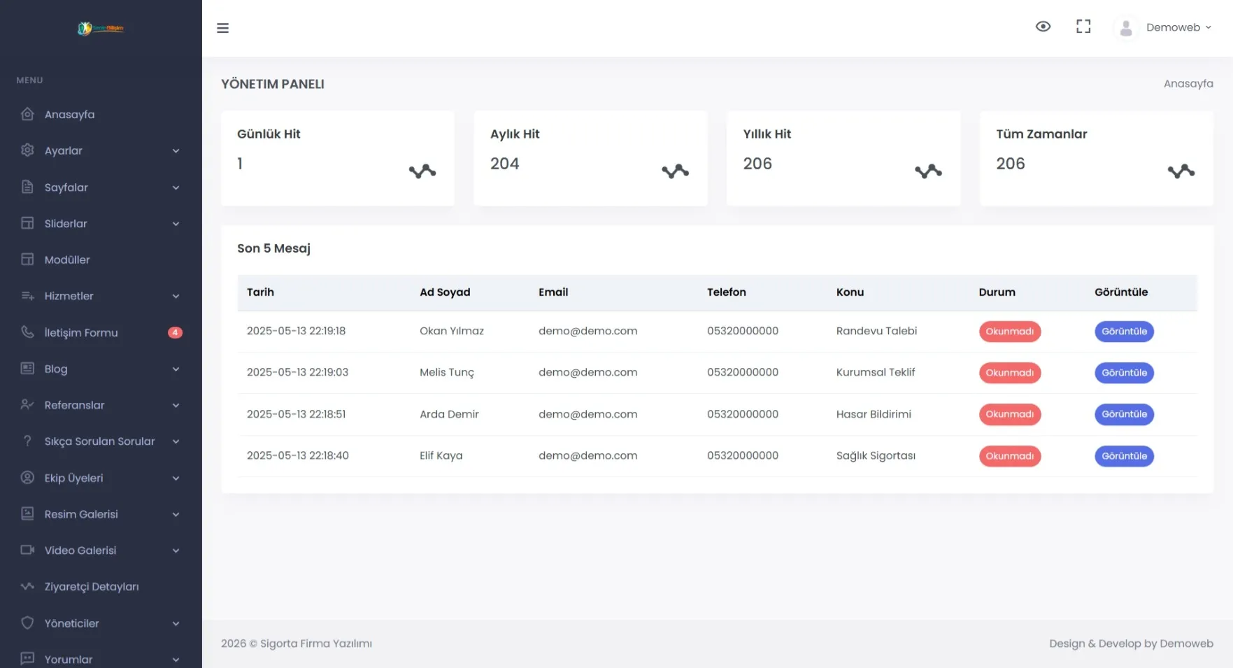 Canlı demo ve admin demo ile satın almadan önce sistemi inceleyebilirsiniz.